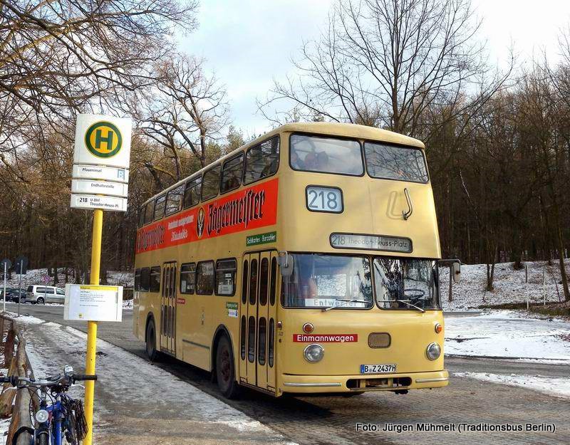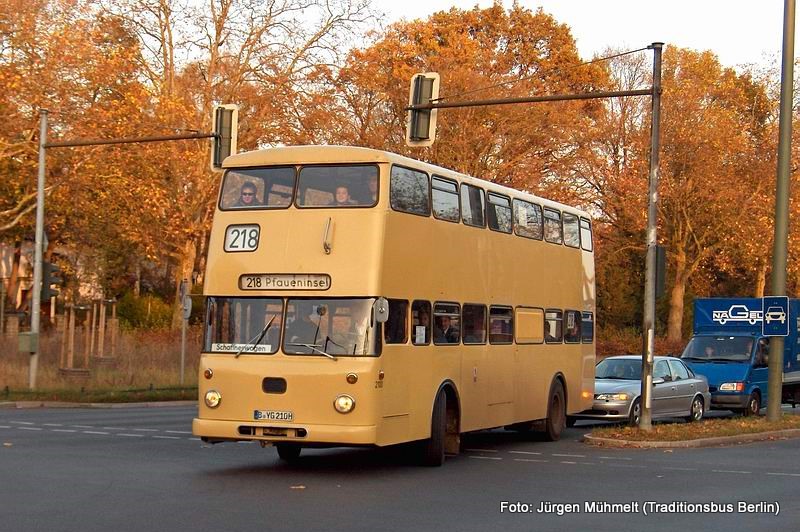 Am 20. April 2010 konnte der zehnte Jahrestag der Traditionsbus auf dem 218er gefeiert werden. Zu Beginn des Vertrages konnte niemand damit rechnen, dass der Einsatz der Traditionsbusse auf der Linie 218 ein prägender Bestandteil der Ausflugslinie zur Pfaueninsel werden wird. Zeitweise beobachten wir, dass die Fahrgäste auf unsere Fahrzeuge warten und sich eine „Runde“ mit den historischen Fahrzeugen gönnen. Aus diesem Grund planten wir unsere Traditionsfahrt 2010 mit einem umfangreichen Angebot im Raum Wannsee einschließlich des 218ers durchzuführen. Über die technischen Probleme an unserem Wagenpark, die zur Verschiebung führten, wurde bereits berichtet.
