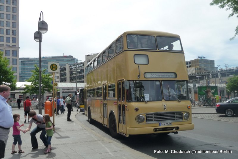 Von einer Rundfahrt nach Tegel kehrt 1658 zum Bahnhof Zoologischer Garten zurück. Foto: M. Chudasch